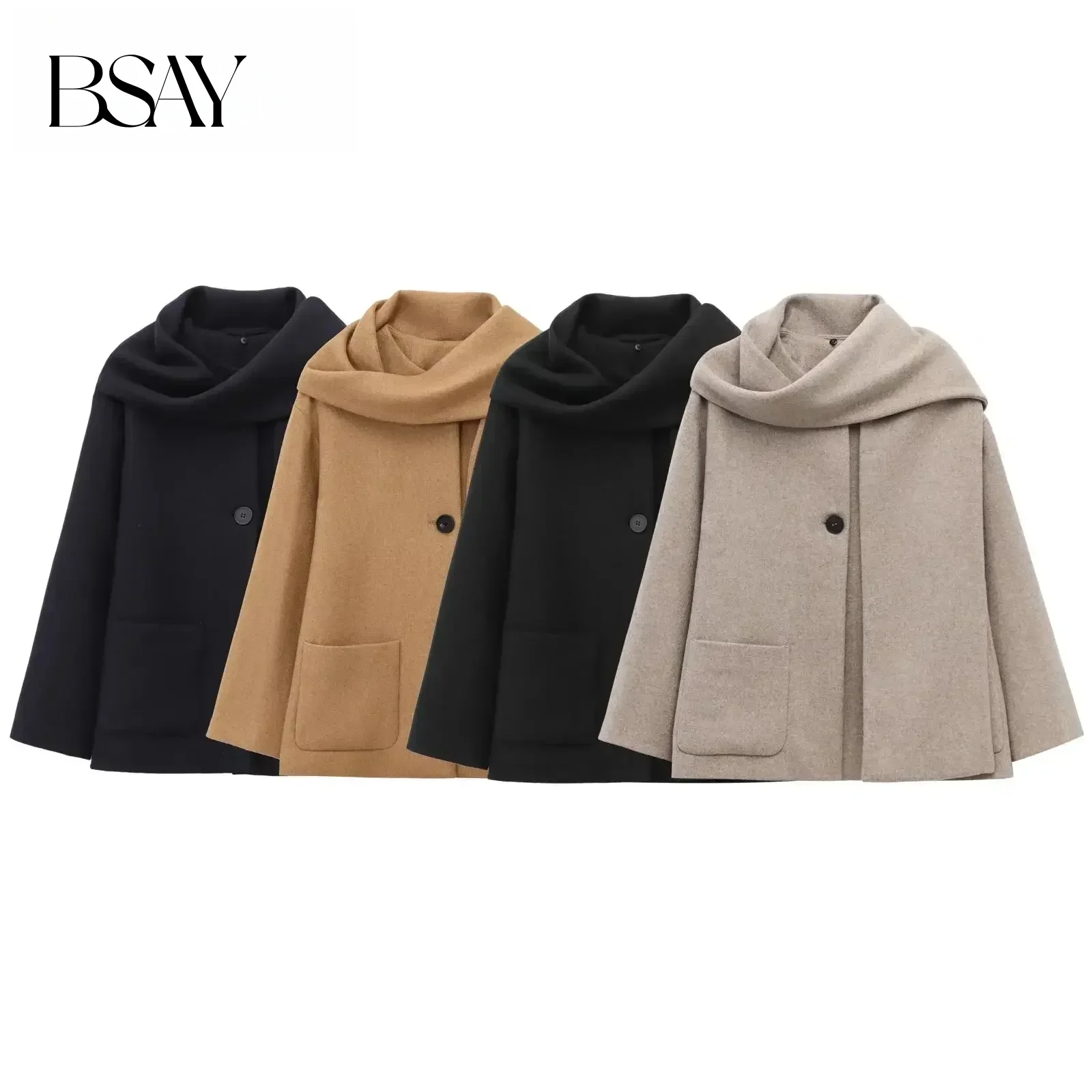Autumn Winter Women Stand Collar Woolen Coats Single Breasted Long Sleeve Turtleneck Loose Short Coat New Double-Breasted Jacket