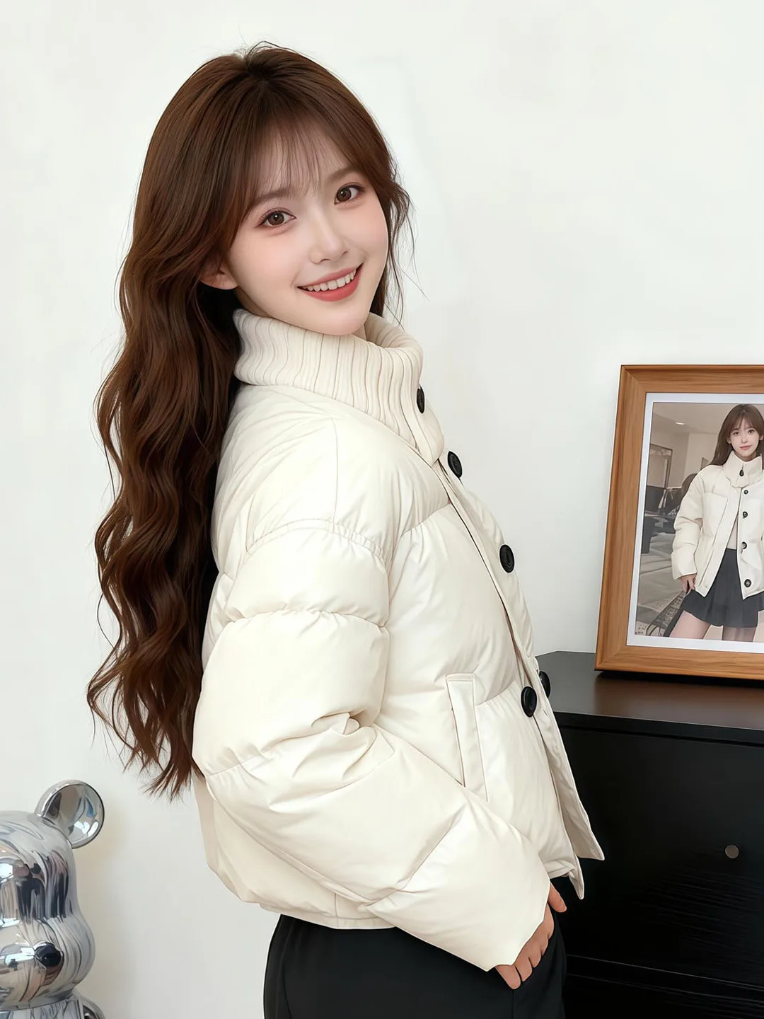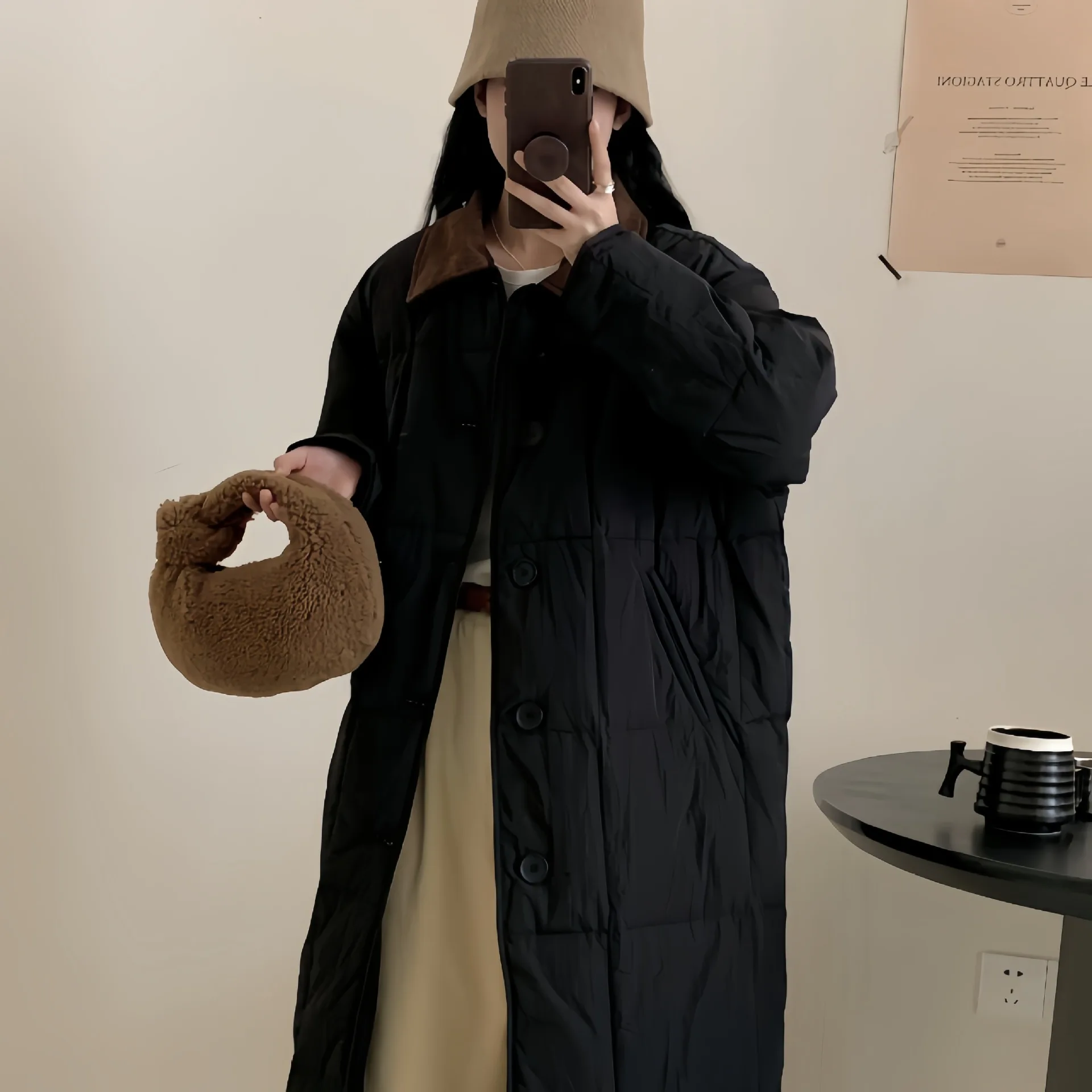 Women's Mid-Length down Cotton Jaet Loose Fit Thiened Winter Outerwear Korean Sle Over-Knee Single Button Design