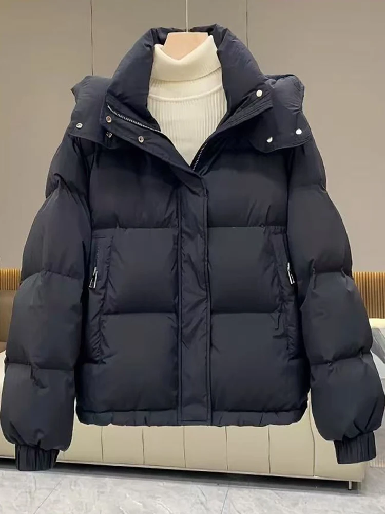 Cotton Padded Jacket Women Casual Loose Black Coat Winter Oversize Thick Warm Parkas Lady Fashion Super Hot Stand Collar Jacket