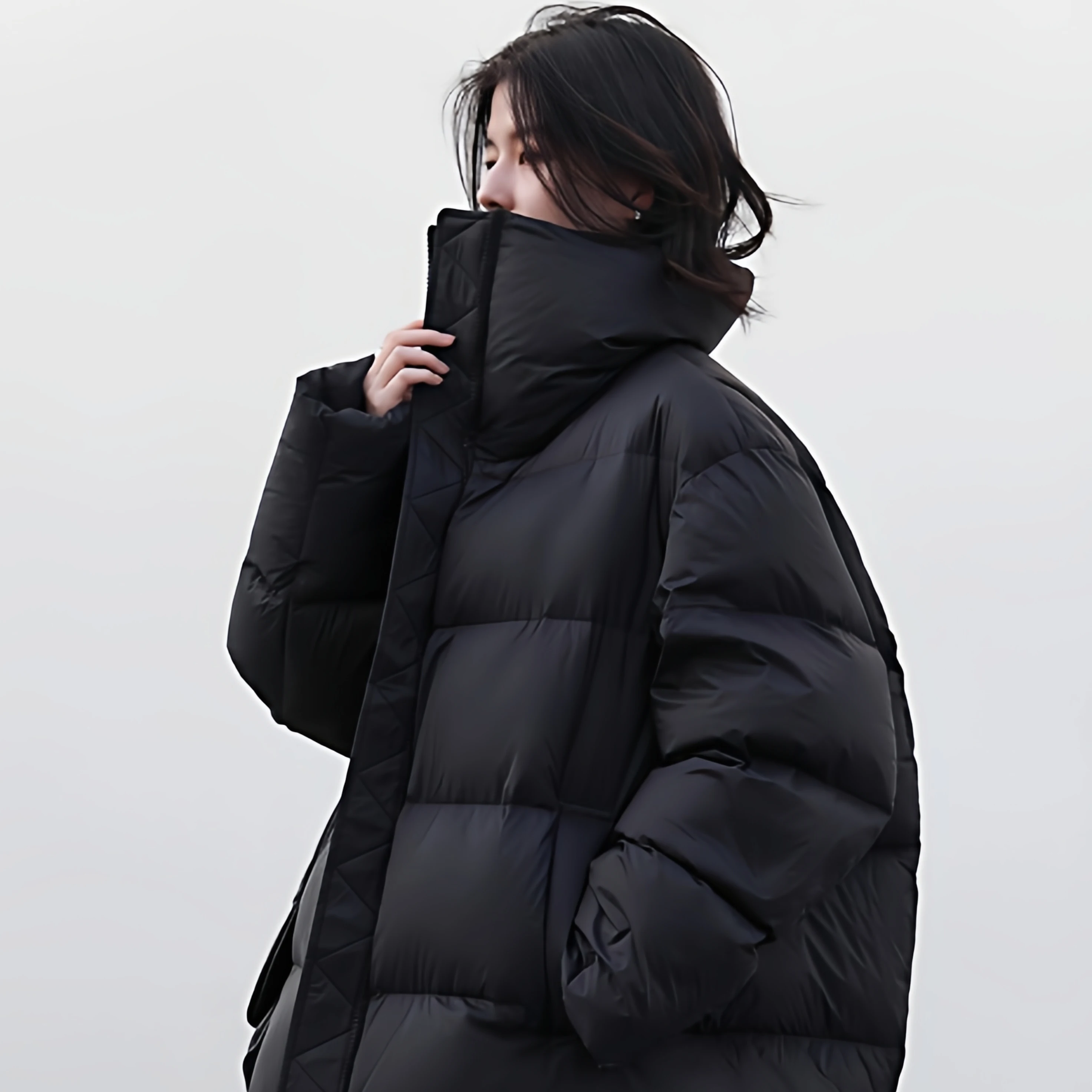 Warm Thickened Stand Collar down Cotton Jacket Women's Winter New Style Loose Fit Black Outerwear Soft Cozy Commute Style