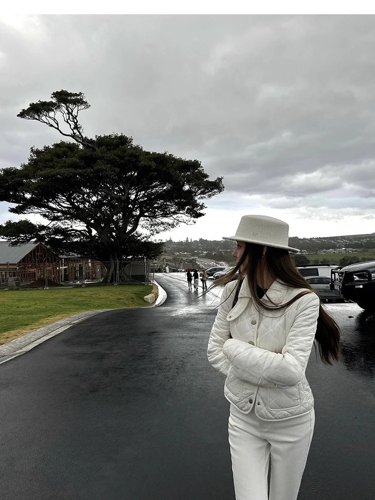 Good Morning Fan Fan Rha1 Women's Slim Fit Cotton Jacket with Waist Cuts Warmth Quilted Diamond Pattern Short Style Long Sleeve