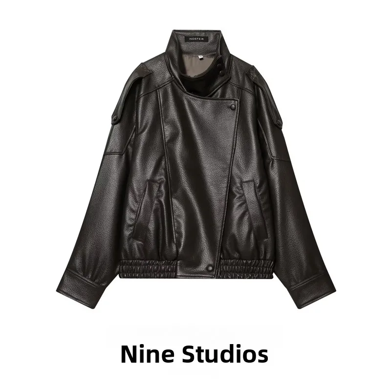 Casual Sle Women's Faionable ort Leather Jaet Zipper Collar Design Spring 2026 Korean Sle Versatile Design Coat