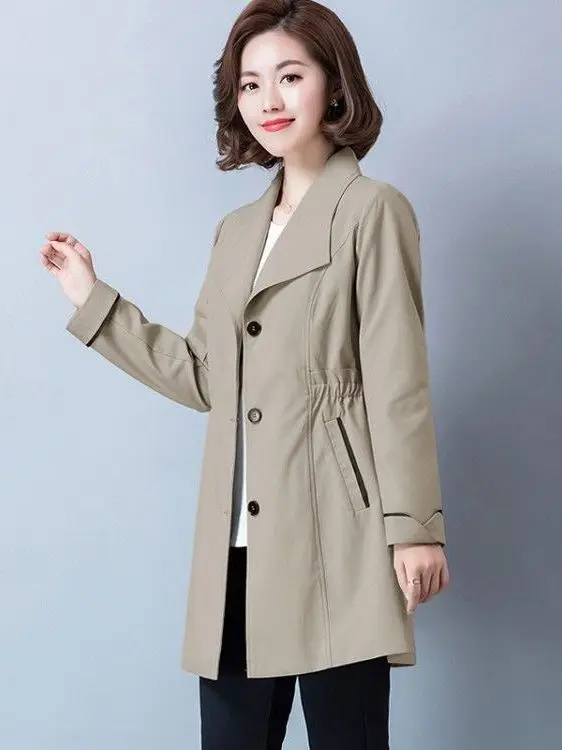 plus Size Spring Autumn New Style High End Windbreaker Coat Women's Loose Slimming Waist Cinched Large Coat Casual Fashion