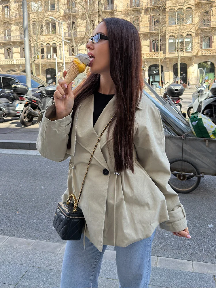 Women's Fashion Double Breasted Short Trench Coat Turn-down Collar Long Sleeve Coats Vintage Female Outerwear Chic Tops