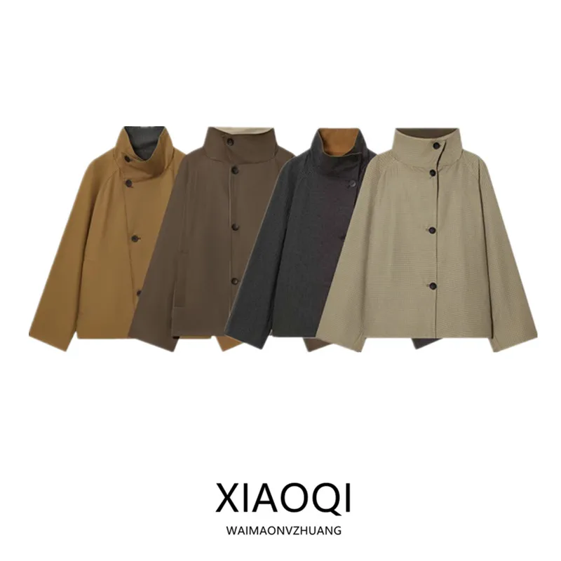 Double-Sided Wear Short High Collar Windbreaker Women's Fashion Versatile New Autumn 2025 Commute Style Loose Fit Long Sleeve