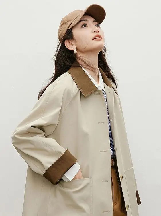 Design Sensation Color Block Collar Women's Coat 2025 New High-End Slimming British Retro Mid-Length Jacket Collar