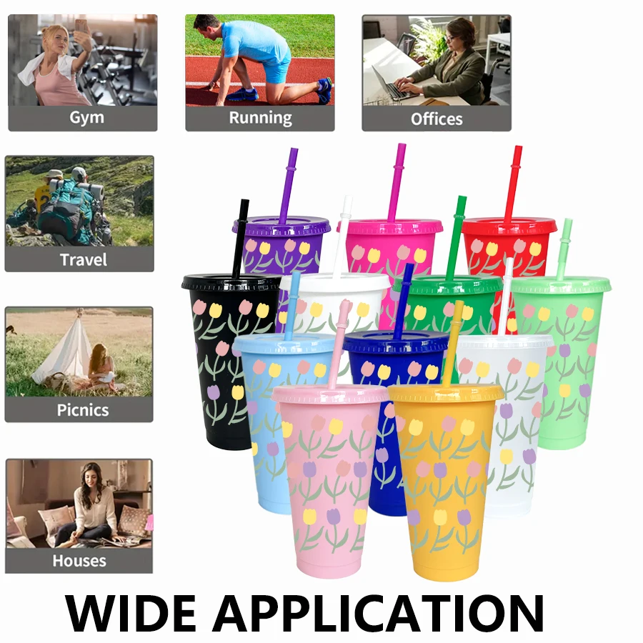 12Pcs/pack Tulip Patterns 780ml/26oz Plastic Tumbler Wedding Cold Cup Birthday Party Drinkware for Back-to-school Gifts
