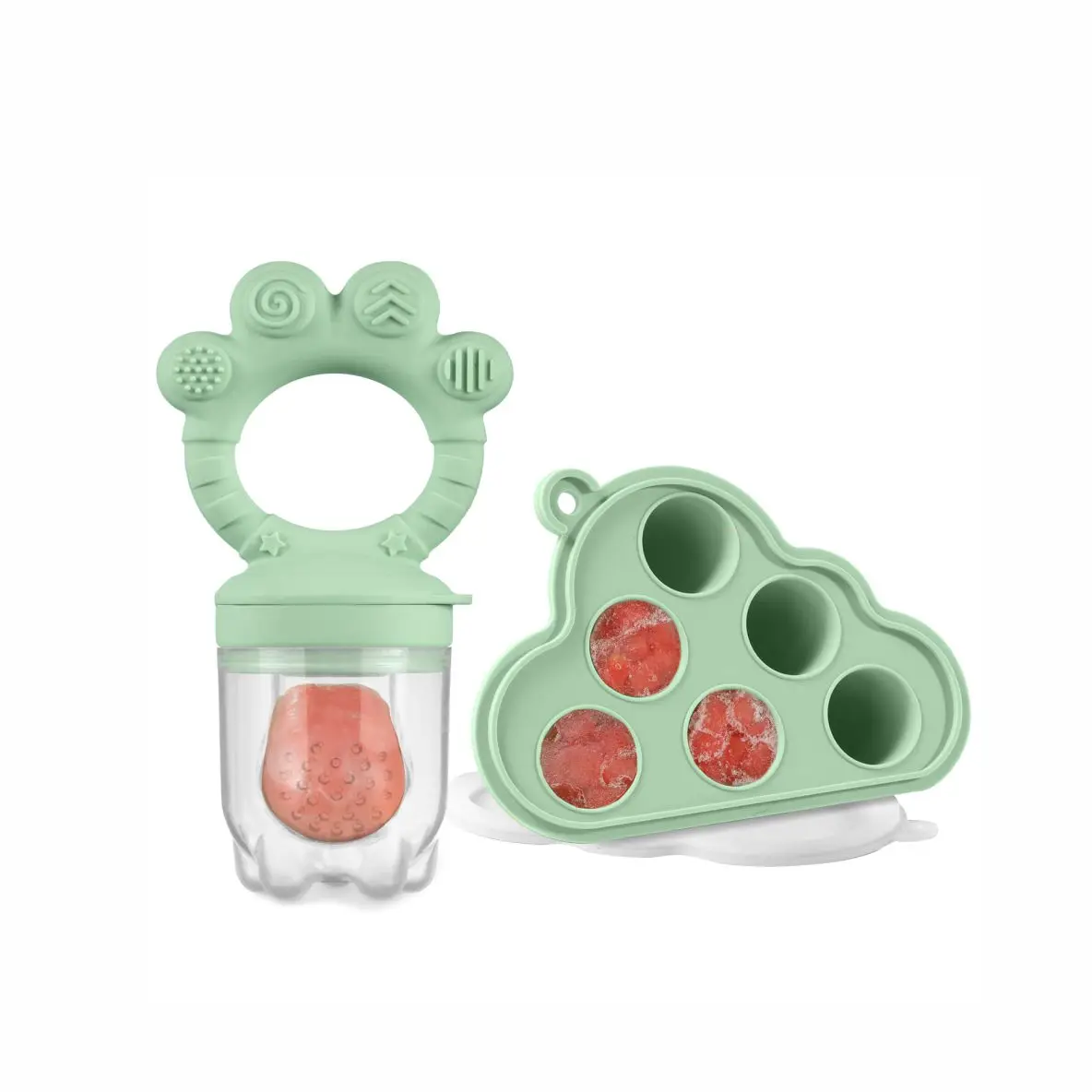 Baby Fruit Food Feeder & Freezer Nibble Tray Combo, Breastmilk Popsicle Molds,BPA Free Silicone Feeder,Infant Self Feeding, 4M+