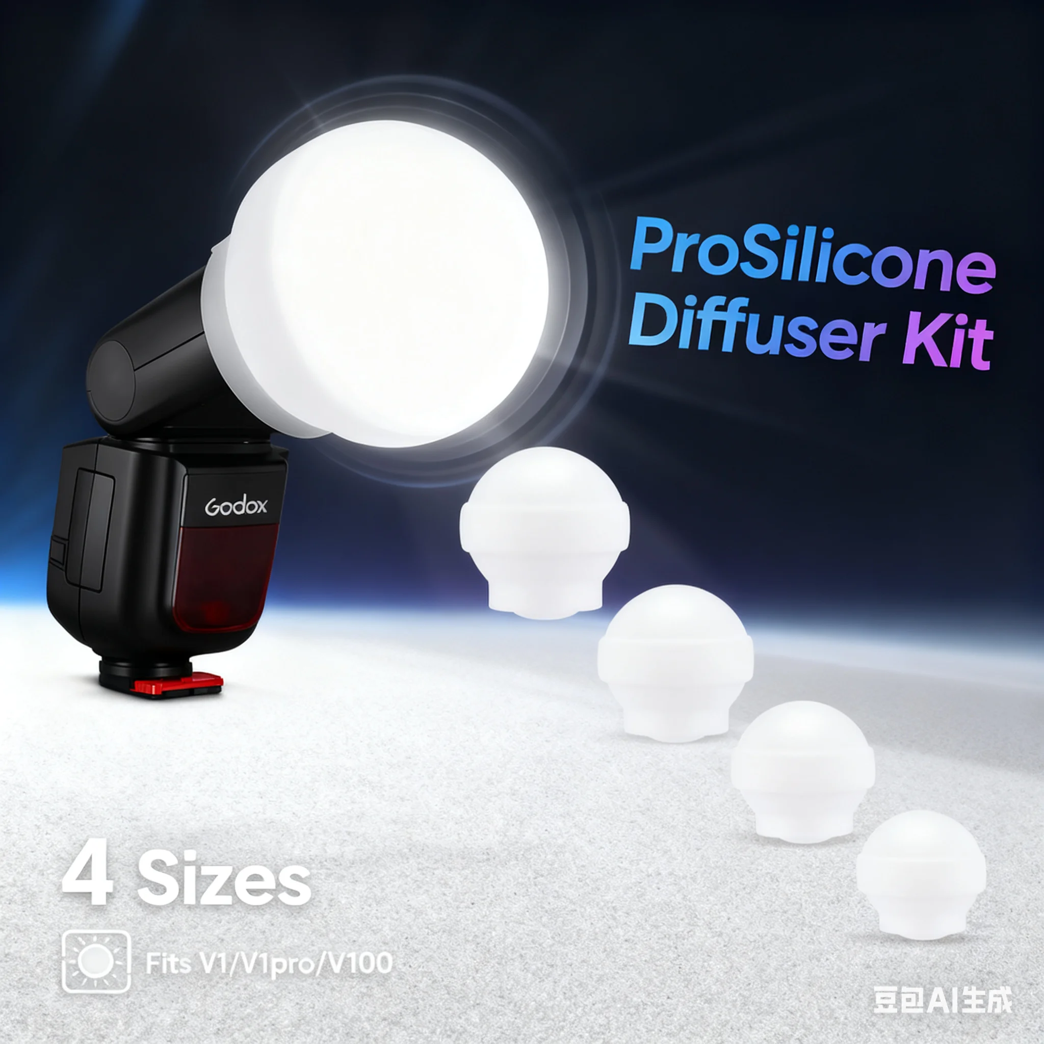 Silicone Dome Diffuser For Godox V1/V1Pro/V100/AD100Pro/H200R – Soft Spherical Flash Modifier, 3-Shape Flexible