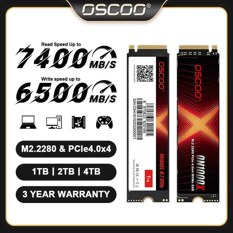 OSCOO NVME PCIe4.0x4 Internal Solid State Disk 7400MB/s M.2 2280 SSD 1TB High Speed Hard Drive For PS5 PC Laptop