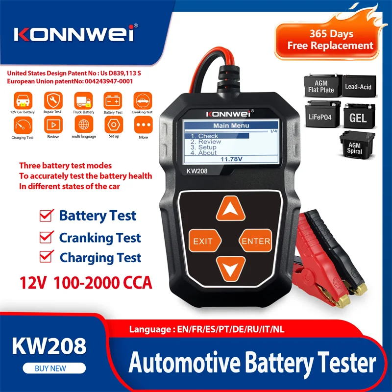 2025 KONNWEI KW208 12V Car Battery Tester Automatic Smart Auto Battery Analyzer 100 To 2000CCA Cranking Car Battery Tester Tool