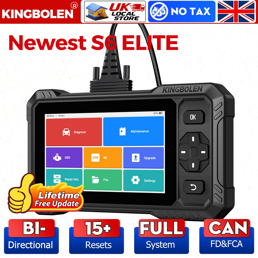 Newst KINGBOLEN S6 Elite Bidirectional Scanner Lifetime free Update,CANFD,15 Resets,Full System Car Diagnosis Upgraded of S6