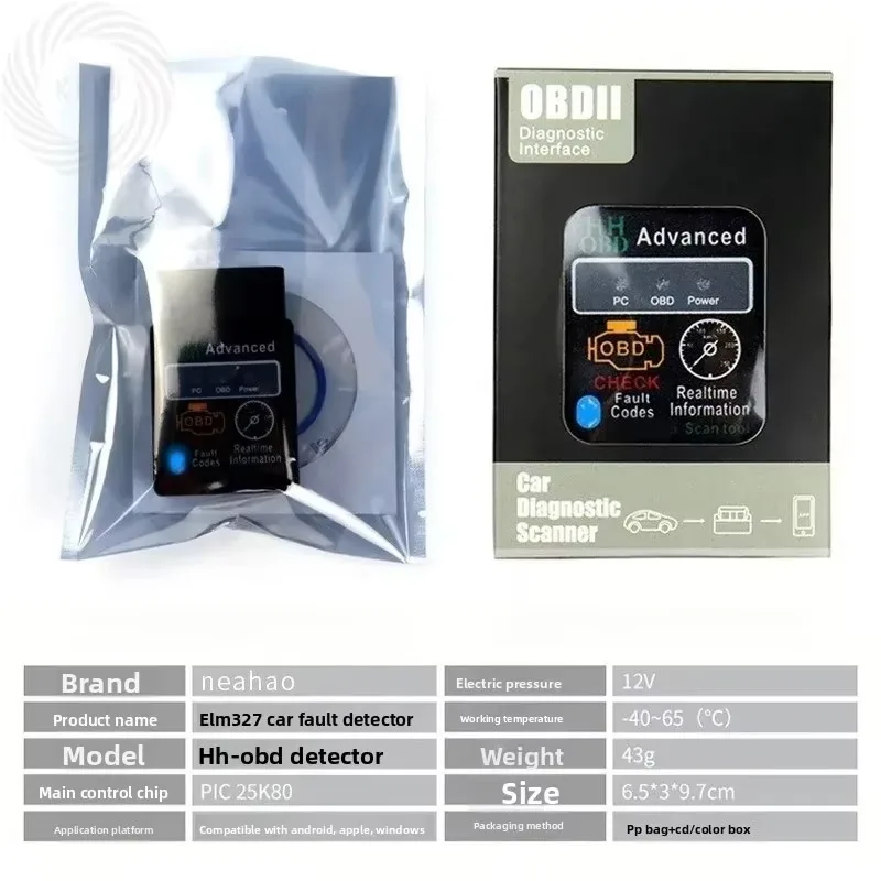 ELM327 V1.5 Bluetooth Scanner OBD2 Diagnostic Scanner Code Reader 16Pin OBD2 Interface Adapter 12V Auto Engine Tester Scanner