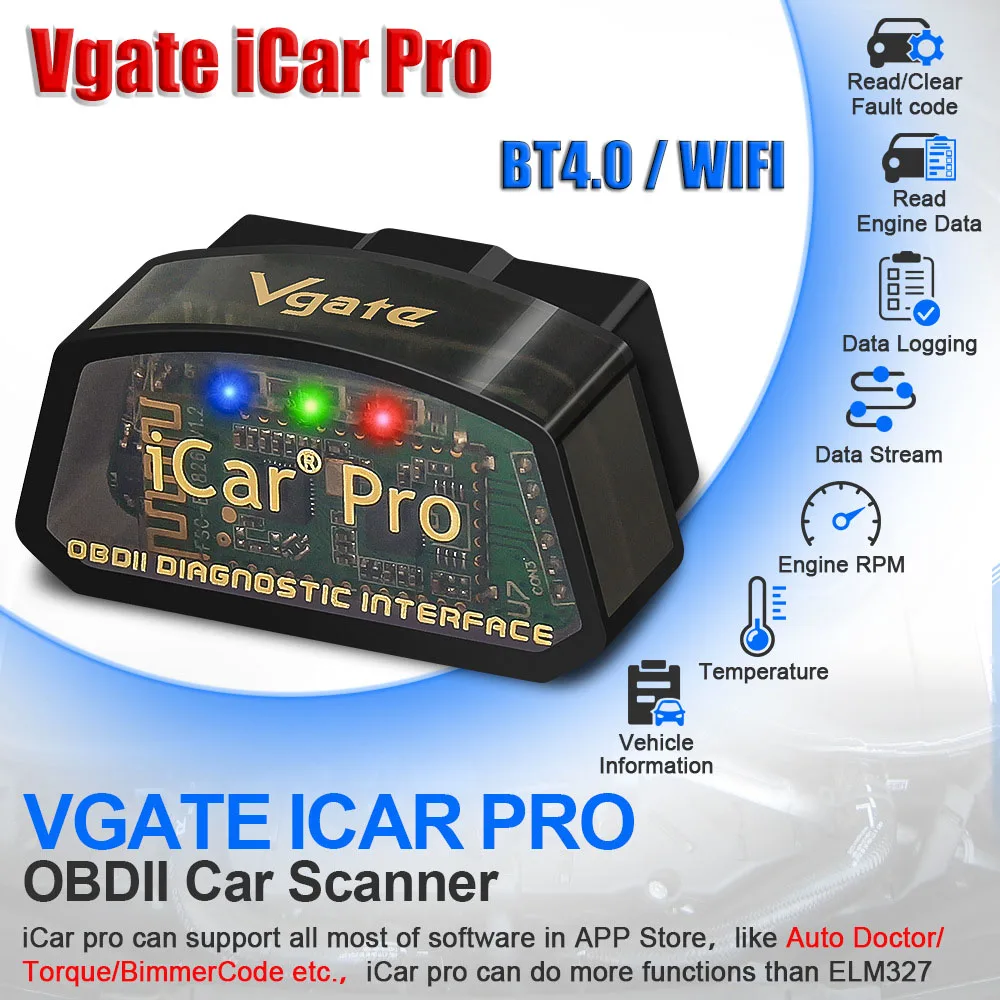 Vgate iCar Pro elm327 OBD2 Scanner OBD Diagnostic Tool Low-power BT4.0/WIFI Automotive Fault Scanner Code Reader for Android/IOS