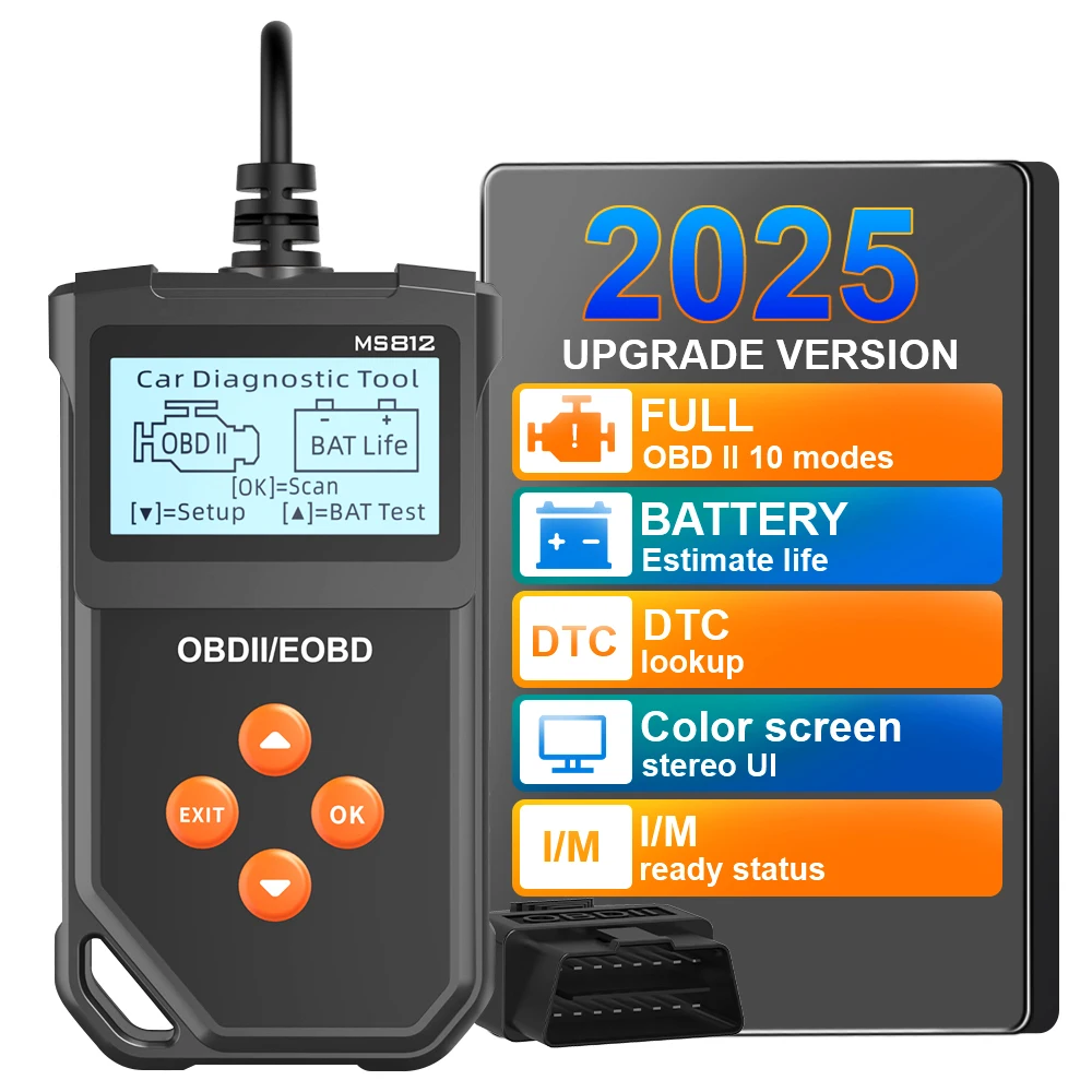 Fault Code Clear MS812 Clear/Erase Codes Car OBD2 Code Reader Car Diagnostic Tools Battery Tester Check Engine System