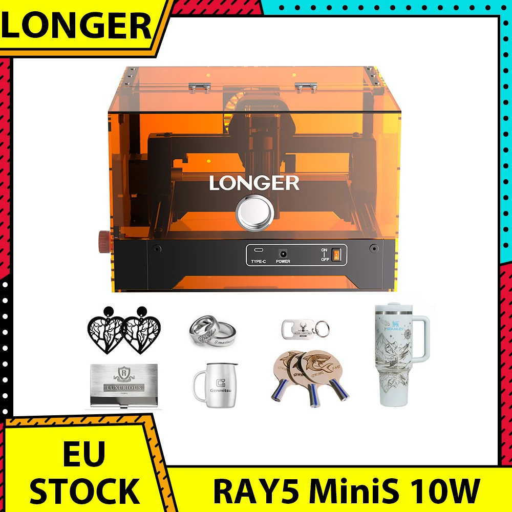 LONGER Ray5 MiniS 10W Enclosed Laser Engraver, 0.1mm Precision, 12000mm/min Speed, WiFi/USB/App Control, 130×120mm Work Area