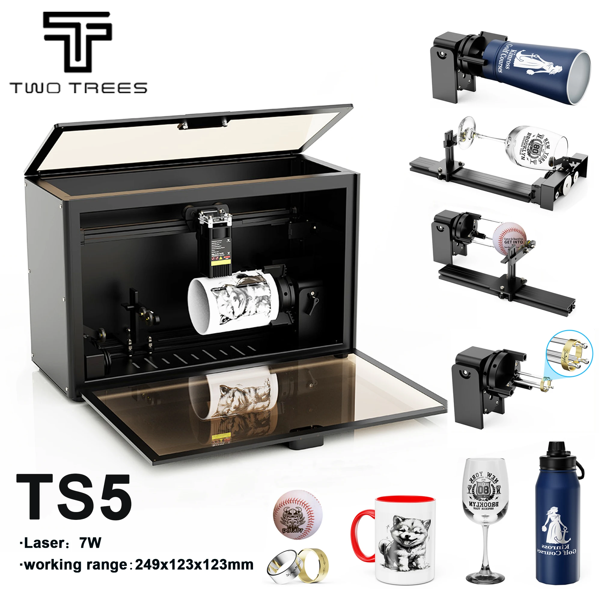 Twotrees TS5 laser engraving machine 7w Rotary Roller for Laser Engraver for Water cups, wine bottles, curved crafts