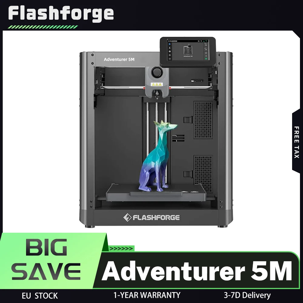 Flashforge Adventurer 5M 3D Printer, 220x220x220mm, Auto Leveling, 600mm/s Max Printing Speed, Filament Runout Reminder