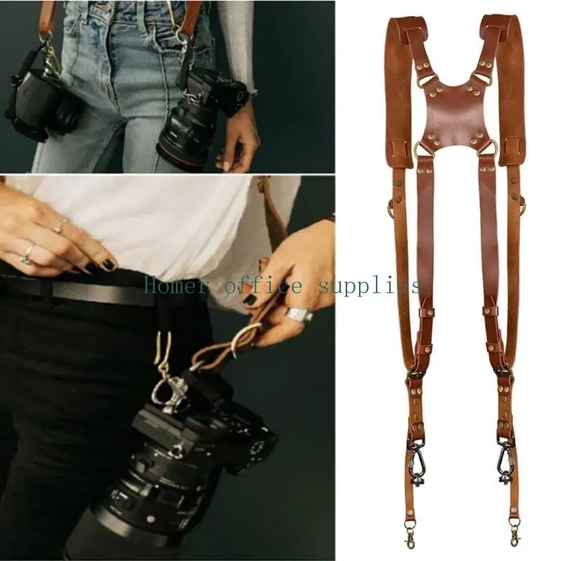 K43B Leather Double Shoulder Harness Multi Camera Strap Shoulder Adjustable for Camera