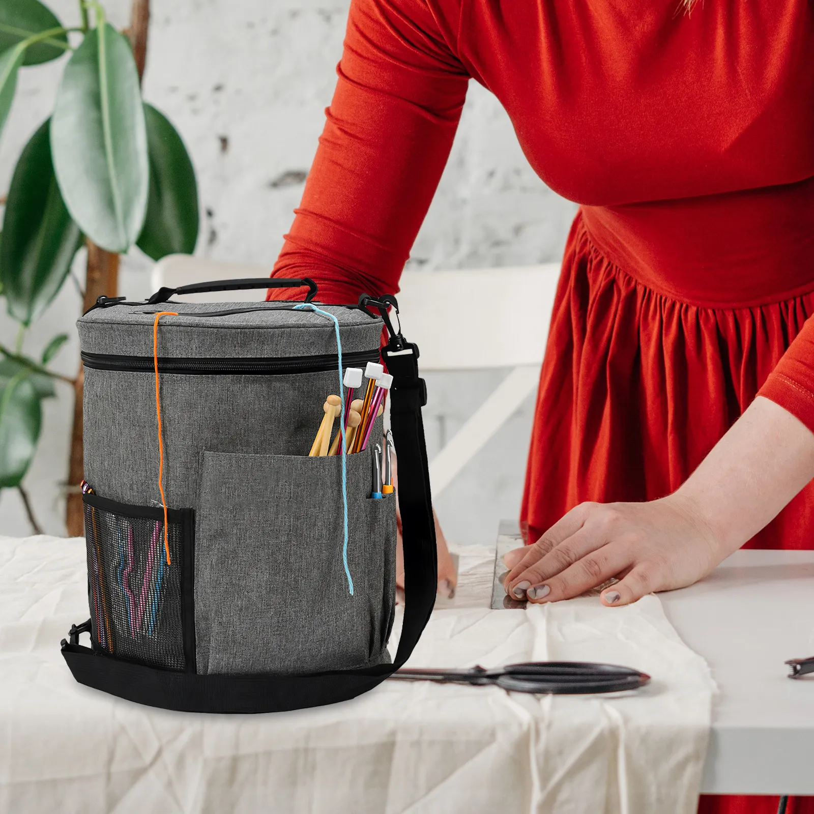 Baseball Bucket Cover Yarn Holder Crochet Storage Bag Compact Oxford Cloth Knitting Organizer Handcarry Craft Case Travel Gift