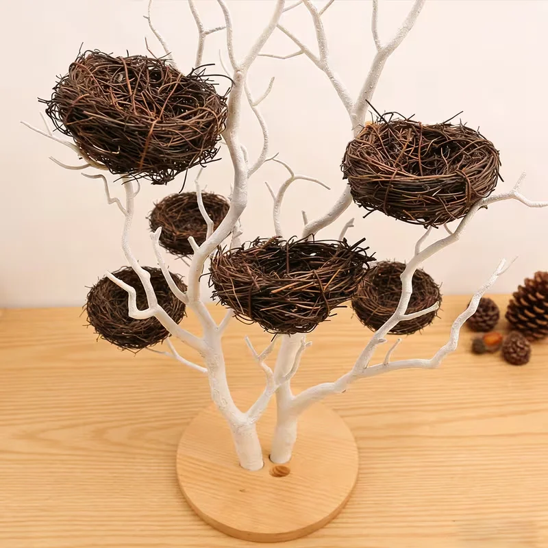 Bird Cage Round Rattan Bird Nest Easter Handmade DIY Craft Vine Simulation Bird Nest Egg Decor Props Home Garden Window Display