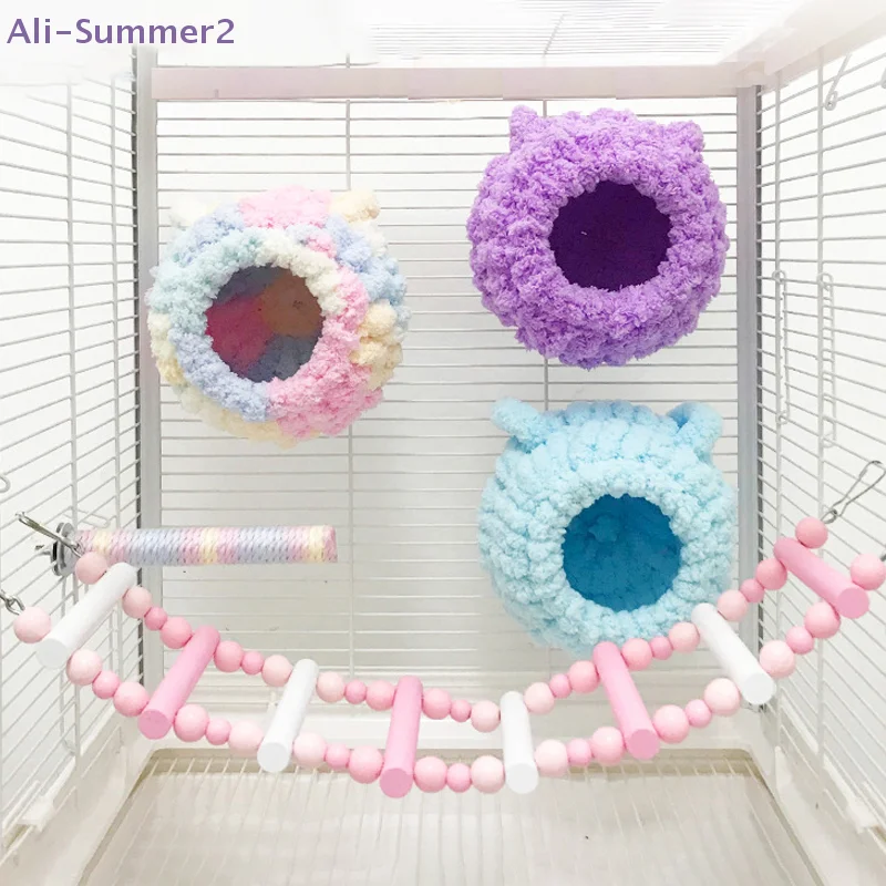 1pc Cute Print Bird Bed Mini Cage Rabbit Squirrel Mat Guinea Pig Nest Hamster House Small Animal Sleeping Bed Pet Hanging Cage