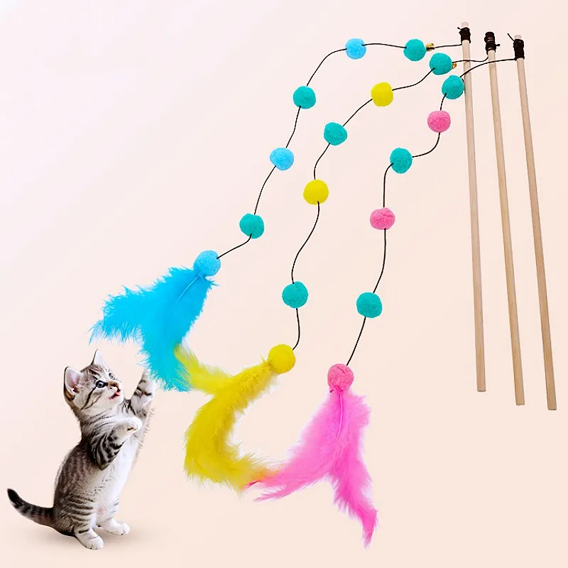 2pcs random style Colorful Simulation Goldfish Insect Cat Teaser Stick Heads Feather Pet Toy