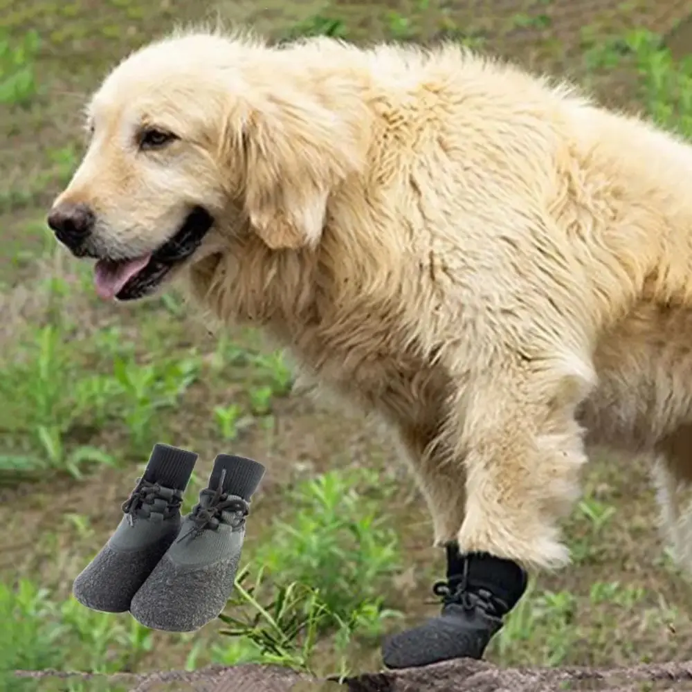 4pcs/set Soft Large Dog Foot Cover Breathable Non-slip Dog Shoes Socks Adjustable Wear Resistant Dog Anti-slip Shoes