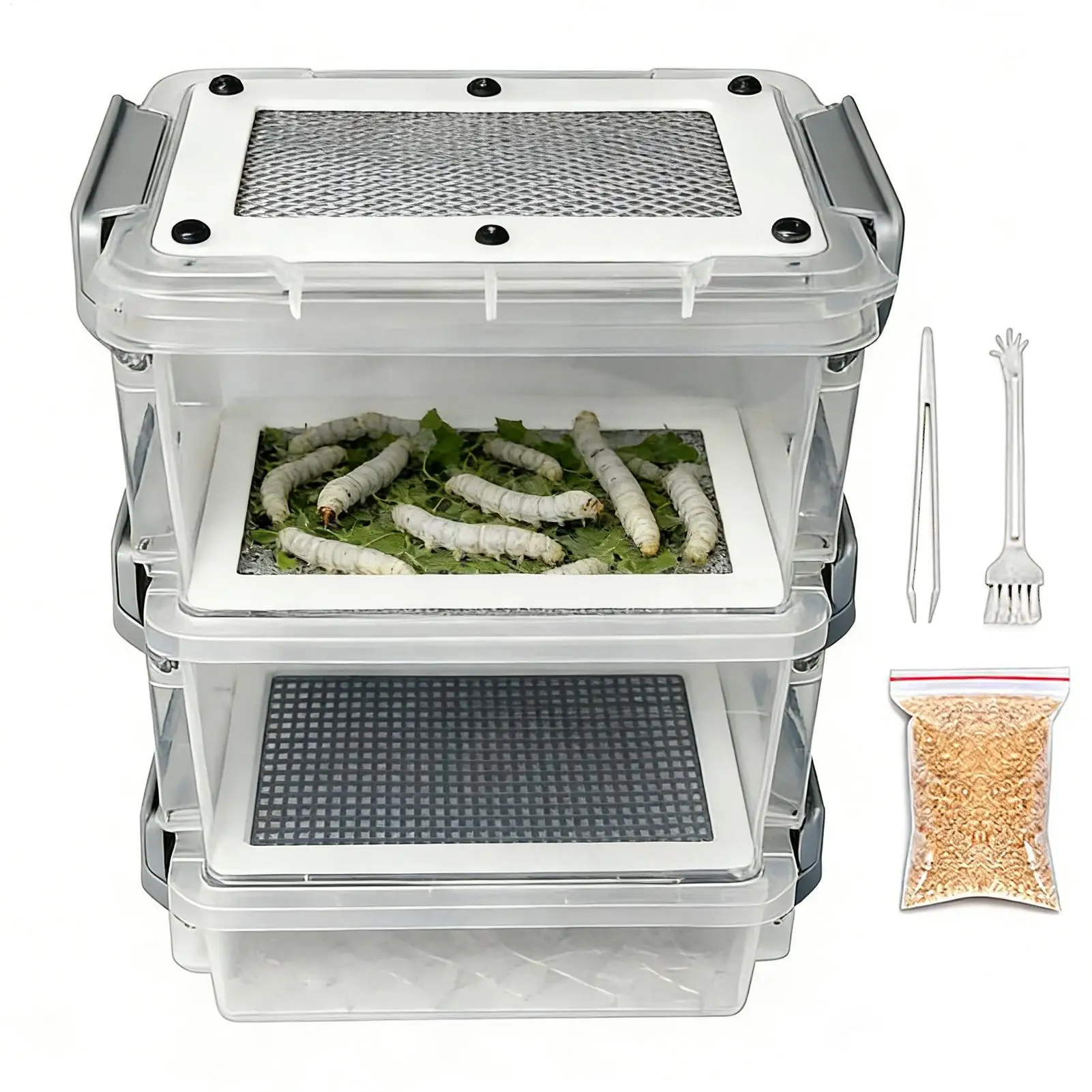 Mealworm Breeding Kit 3-Layer Silkworm Feeder Bin Corn Worm Breeder Box for Pet Parents Animal Lovers Keepers Breeders Hobbyists