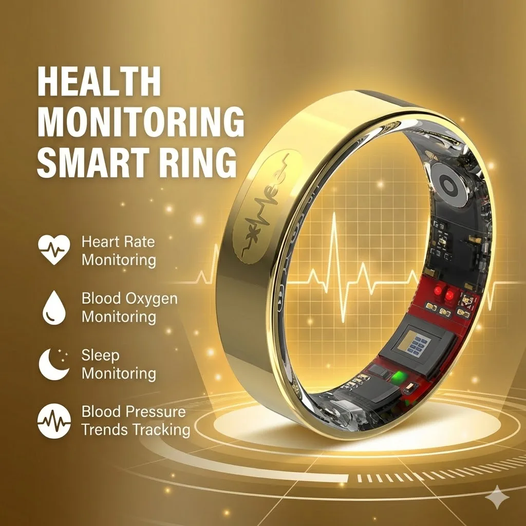 2026 New Smart Ring Heart Rate Blood Pressure Sleep Monitoring Motion Tracking IP68 Waterproof Men Women Smart Ring Holiday Gift
