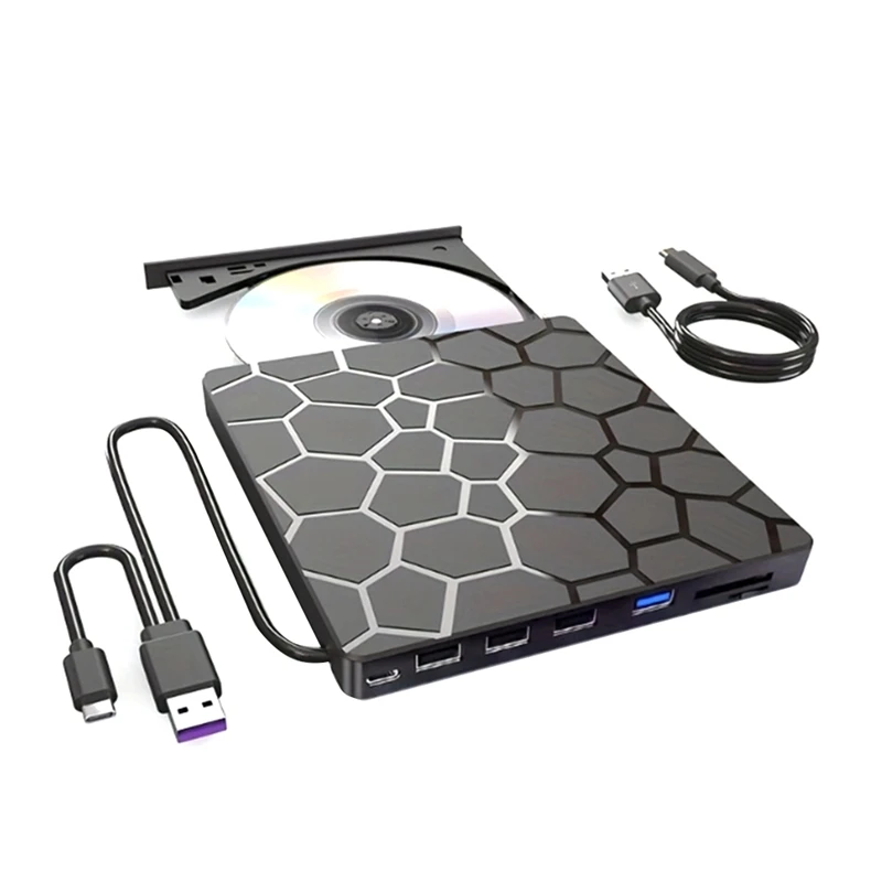 AAAEL-External DVD RW Drive USB 3.0 Type C 7 In1 Interface Slim DVD CD Writer Burner Reader Player Optical Drive For Laptop PC