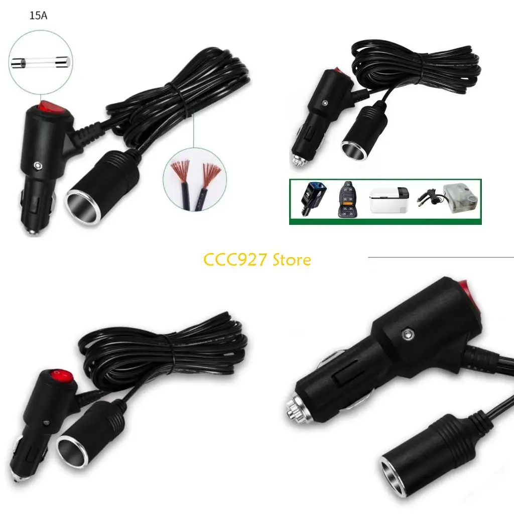 B03F 12V24V Car Cigarette Extension Cord On/Off- Button Support up to 180W