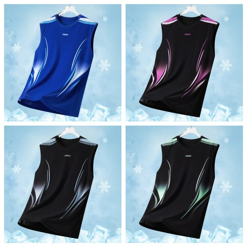 Men Fashionable Ice Silk Loose Comfortable T-shirt Summer Outdoor Table Tennis Sports Training Sweat Absorbing Quick Drying Vest