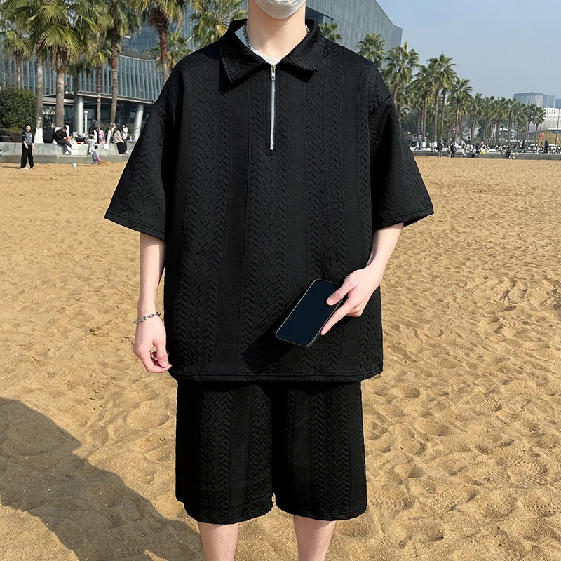 Outdoor Table Tennis Casual Loose Comfortable Short Sleeve Two-piece Summer Fashion Fried Dough Twists Polo Shirt Shorts Set