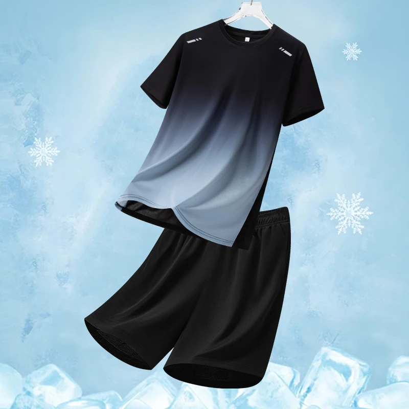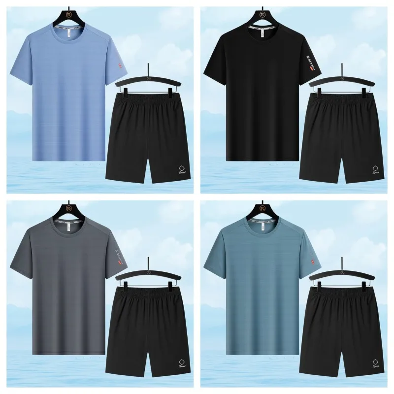 Men's Outdoor Table Tennis Sports Comfort Set Summer Fashionable and Casual Ice Silk Quick Drying Short Sleeved Shorts Set