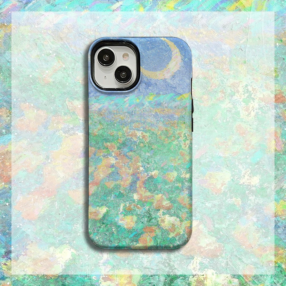 Impressionist Moonlight Night Flower Sea Oil Painting | Starlight Crescent + Hazy Flower Field Healing Phone Case Suitable for A