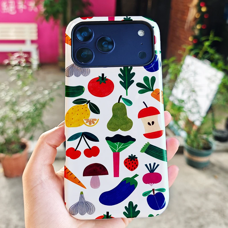 Fresh fruits and vegetables hand-painted decoration warm and cute ins style soft and hard 2-in-1 mobile phone case suitable for