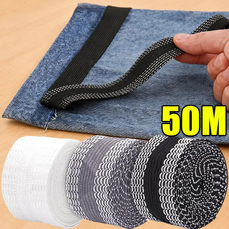 50M Self-Adhesive Pants Hem Paste Tape Trouser Edge Paste Iron-on Pant Shorten Repair Jean Hemming Tape For DIY Sewing Fabric