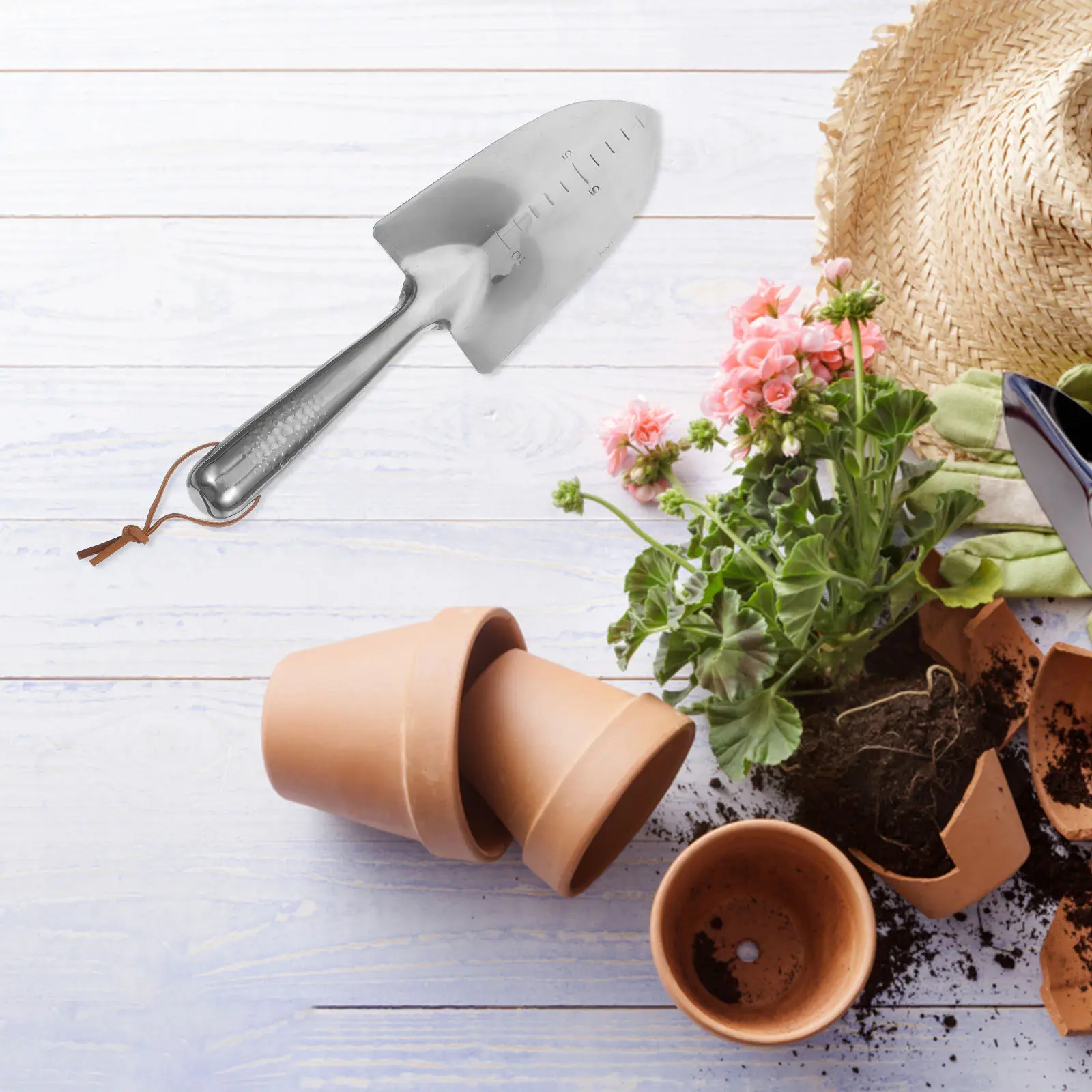 1Pcs Stainless Steel Garden Shovel with Scale Durable Ergonomic Handle for Yard Planting and Weeding Digging Shovel
