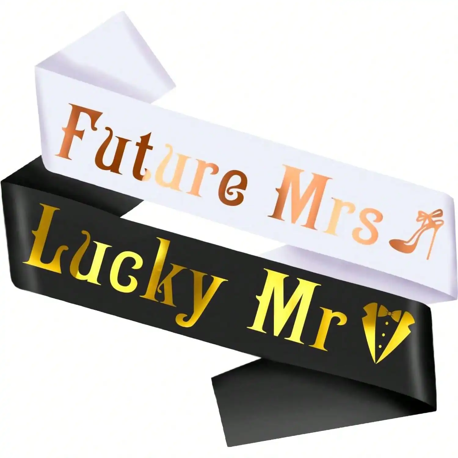 Future Mrs & Lucky Mr - Bride to Be Sash and Groom to Be Sash Kit, for Wedding Bridal Shower Party Decorations Engagement Gifts