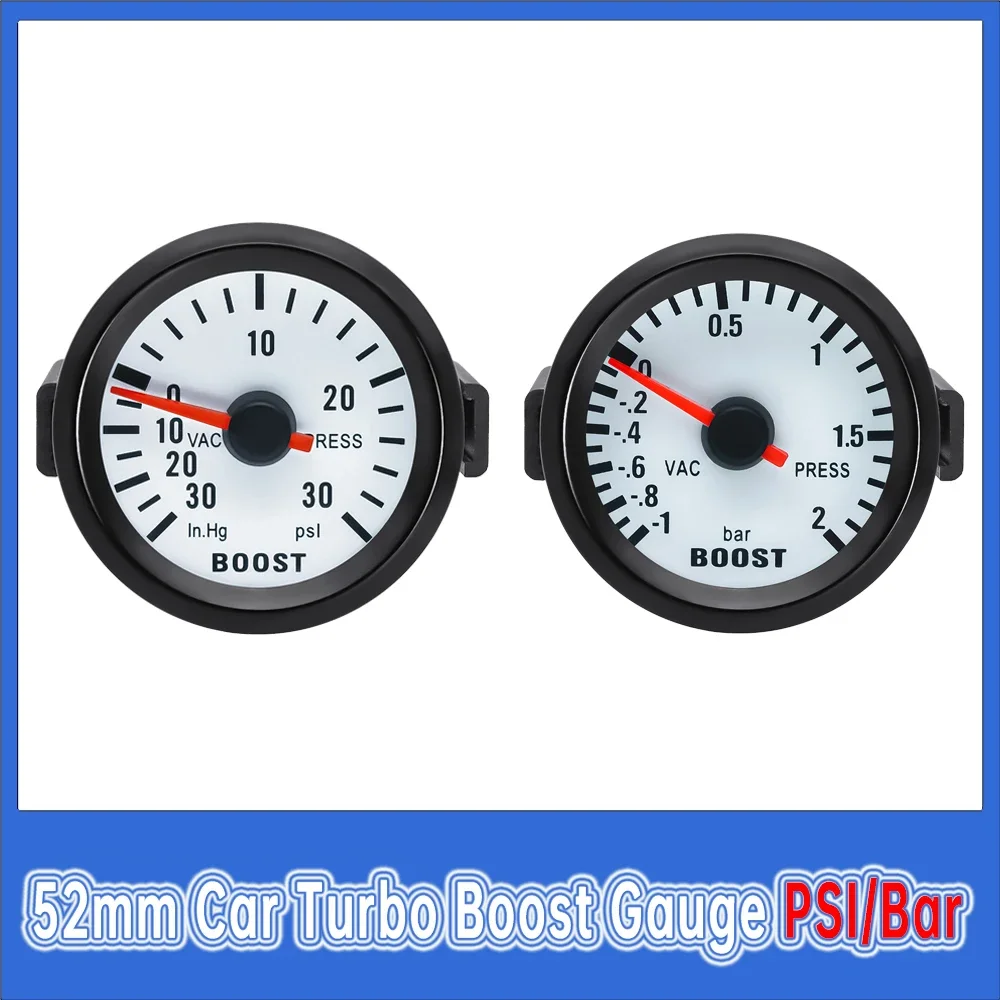 52mm Universal Car Turbo Boost Gauge -1~2Bar/-30~30 PSI with Blue Backlight for 12V Racing Car Holder Cup Boost Gauge