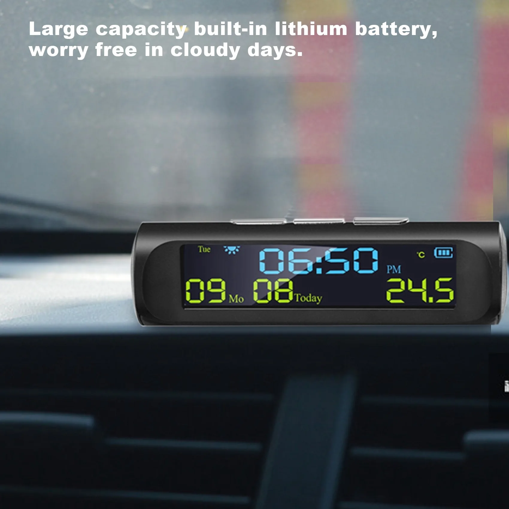 Unusual Car Solar Powered Clock, 24 Hour High-Precision Electronic Watch Automatic Brightness Adjustment Thermometer Durable Eas