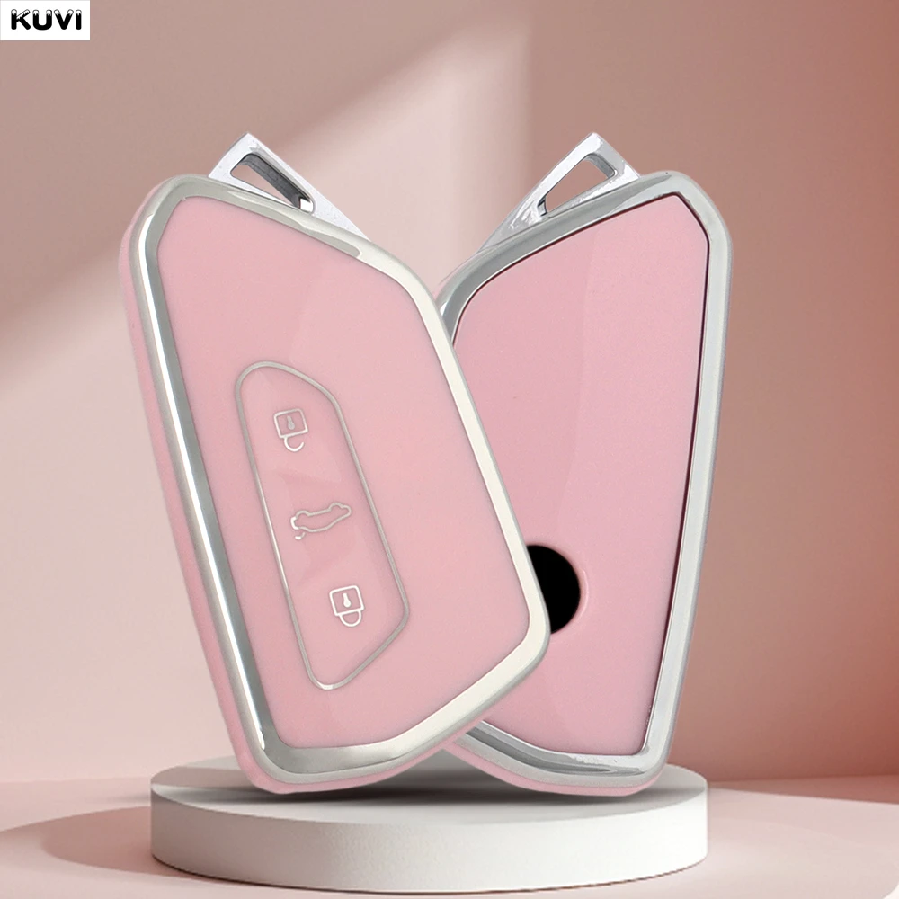 New Pink TPU Car Remote Key Case Cover Shell Fob For VW Volkswagen Golf 8 2020 Skoda Octavia A8 2021 SEAT Leon MK4 Accessories
