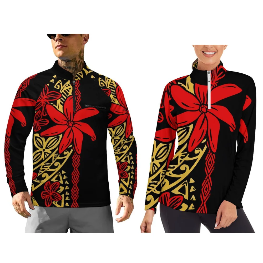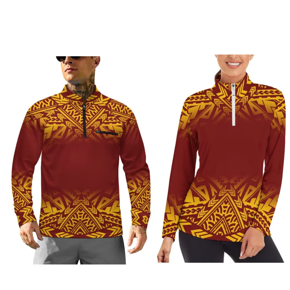 Customizable Fiji Tribal Pattern Long-Sleeved Sportswear For Men And Women In Autumn And Winter For Couple Decoration