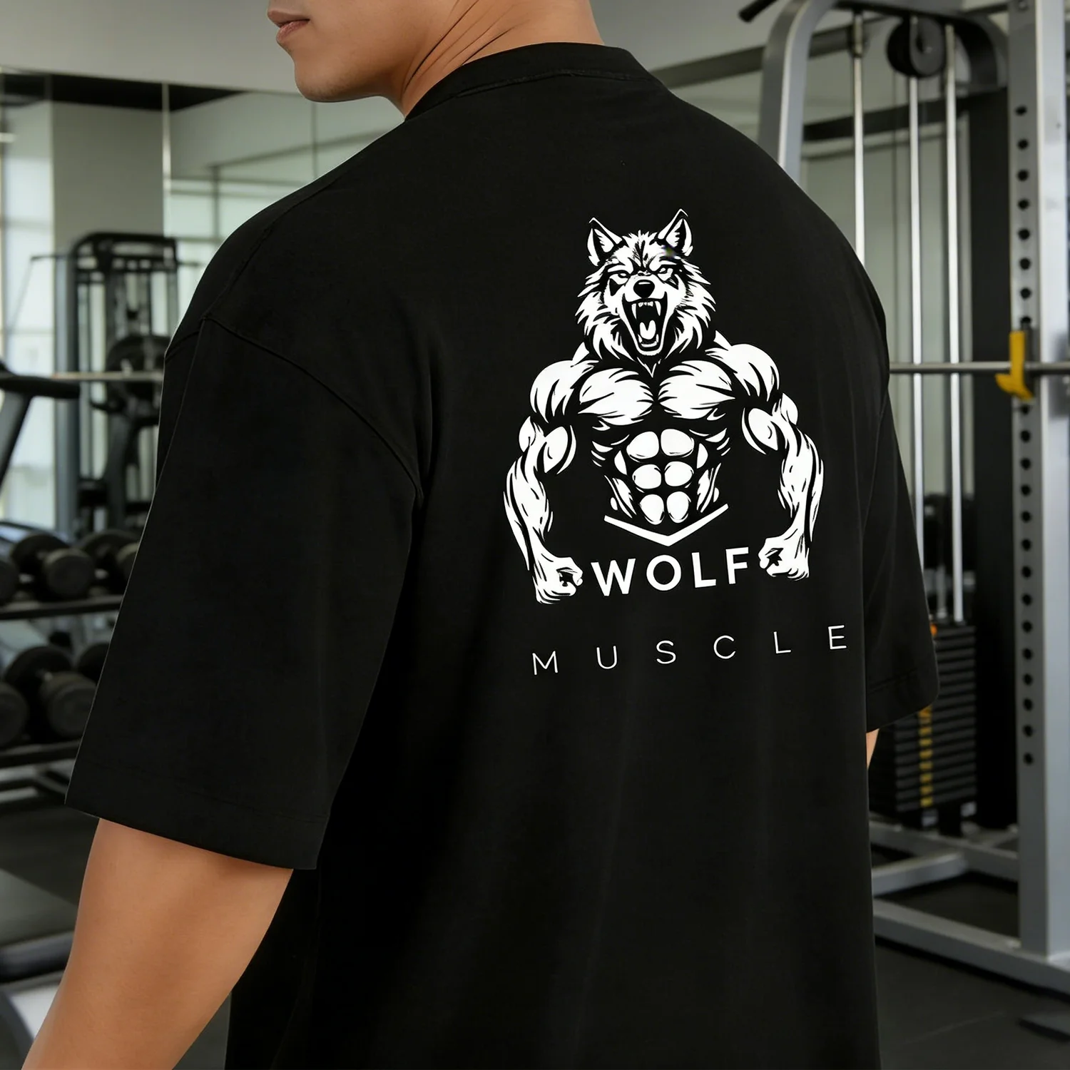 Wolf Muscle Gym T Shirt Men 100% Cotton Fitness Workout Tee Bodybuilding Training Tops