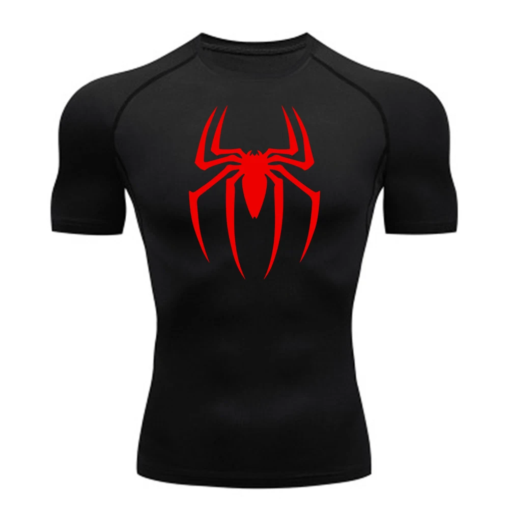 2025 Men's Spider Print Compression Shirt, Quick Dry T-Shirt, Gym Running Jersey, Breathable Short Sleeve, Spring, Summer, S-3XL