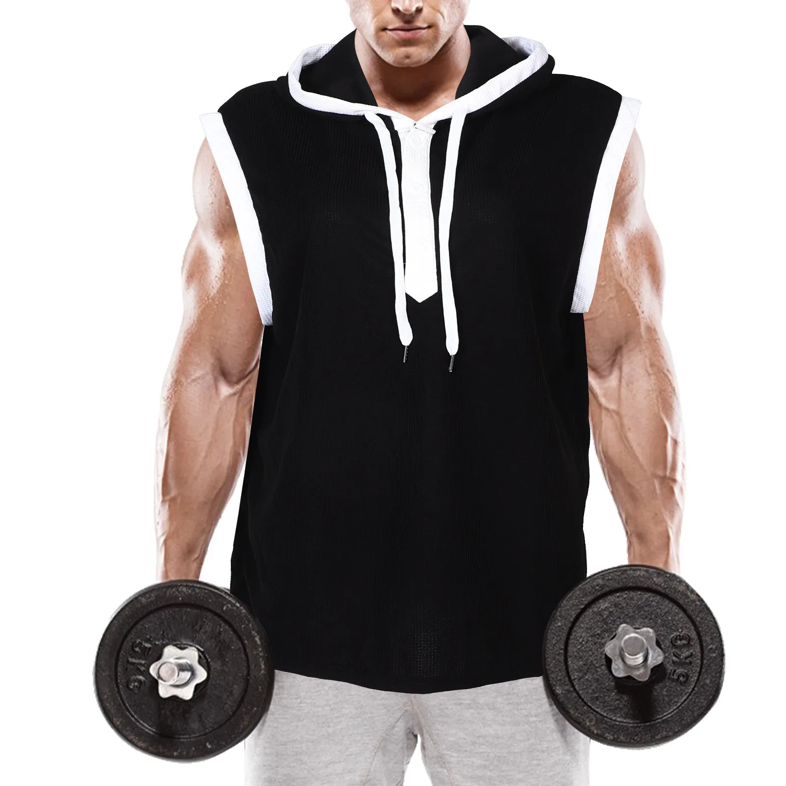 Men Sleeveless Hooded Shirt Muscle Hoodie Gym Workout Hooded Tank Tops Sports Training Sleeveless Hoodies Bodybuilding
