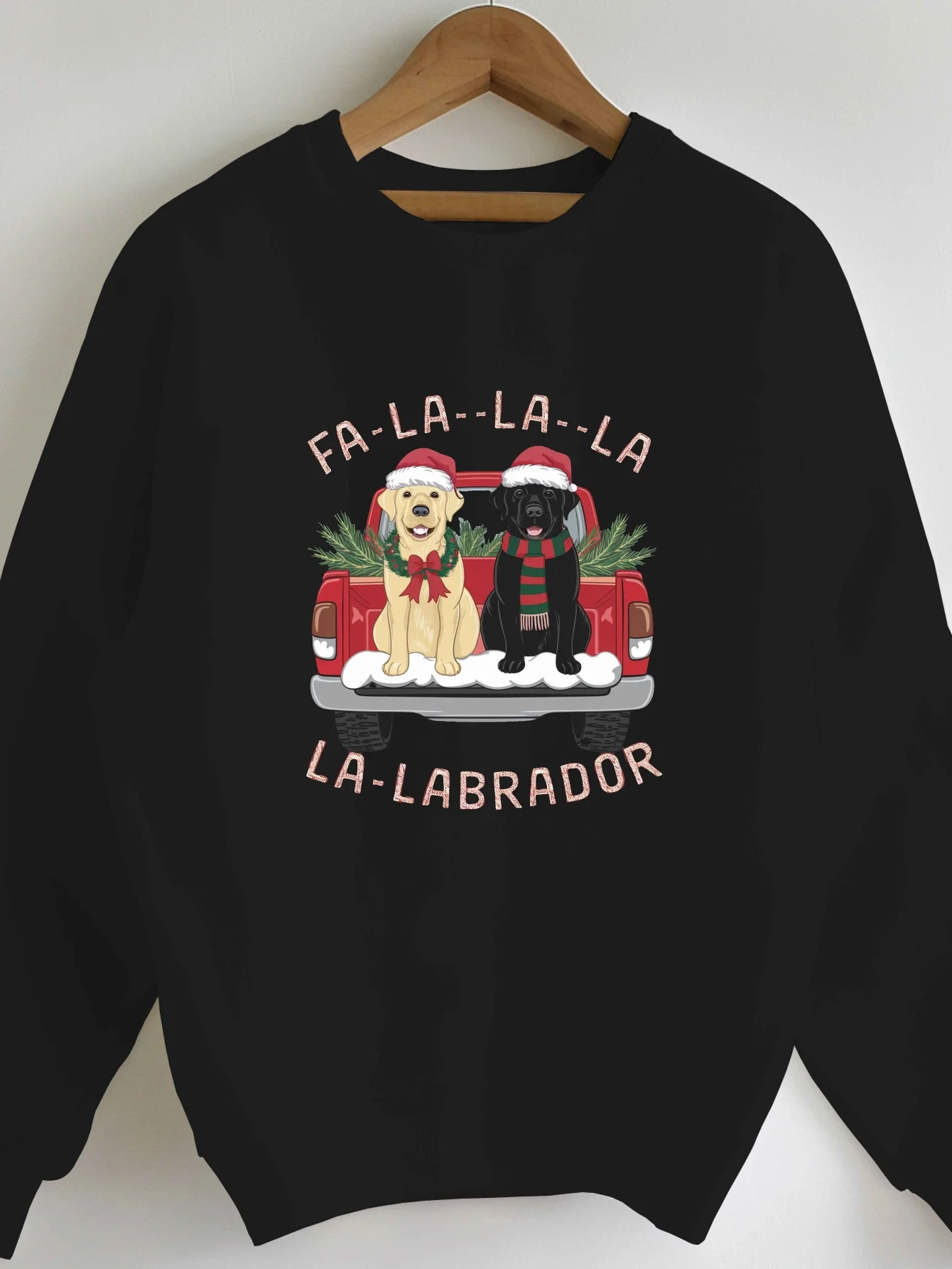 Women's and Men's Christmas Labrador Crew Neck Sweatshirt Holiday Dog and Christmas Truck Design Holiday Clothing