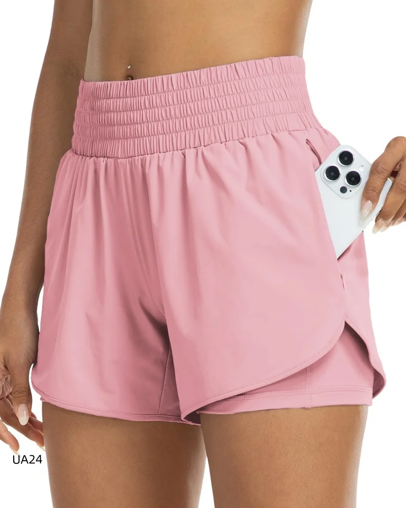 Women's 2-in-1 Running Shorts High Waisted Athletic Shorts for Gym Yoga Double Layer Workout Shorts with Side Pockets