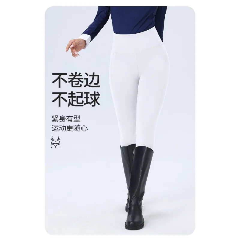 Autumn Thin Fleece Equestrian Breeches Women Horse Riding Leggings Silicone Warm Plush Riding Pants Non-Slip Training Tights
